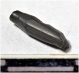 | Description / विवरण | A fragment of a stone drill bit, circular in section broken from both ends of smooth surface. |