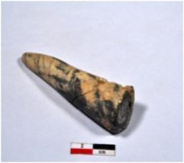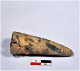 | Description / विवरण | A standard sized of shell point showing conical in shaped, broken from upper part, having rough surface. |
