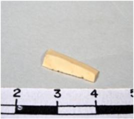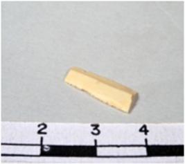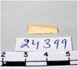 | Description / विवरण | A fragment of a rectangular shaped chert blade showing dorsal sides with sharp cutting edges having smooth surface and triangular section. |