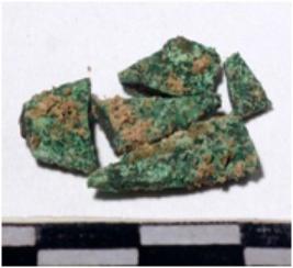 | Description / विवरण | A fragment of a copper arrow head pieces rectangular in section pointed at one end of rough surface. |