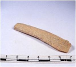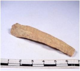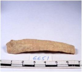 | Description / विवरण | A fragment of a rectangular shaped chert blade showing dorsal sides with sharp cutting edges having smooth surface and triangular section. |