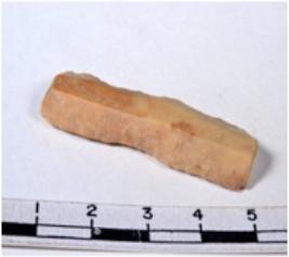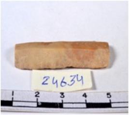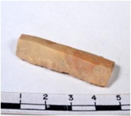| Description / विवरण | A fragment of a rectangular shaped chert blade showing dorsal sides with sharp cutting edges having smooth surface and uneven section. |
