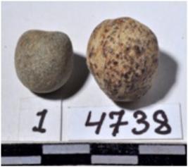 | Description / विवरण | A stone sling ball, round in shape of rough surface. |