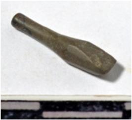 | Description / विवरण | A fragment of a stone drill bit, circular in section, broken from one end of smooth surface. |