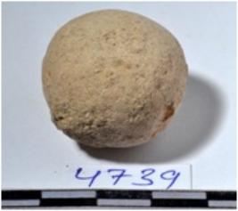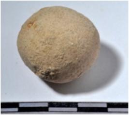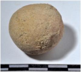 | Description / विवरण | A terracotta sling ball round in shape of smooth surface. |