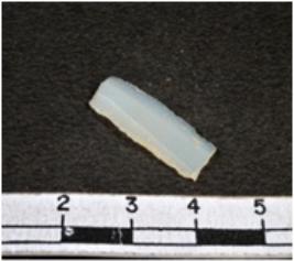 | Description / विवरण | A fragment of a rectangular shaped chalcedony blade showing dorsal sides with sharp cutting edges having smooth surface and triangular section. |