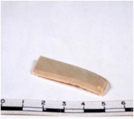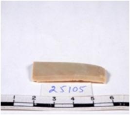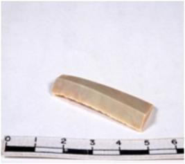 | Description / विवरण | A fragment of a rectangular shaped chert blade showing dorsal sides with sharp edges having smooth surface and triangular section. |