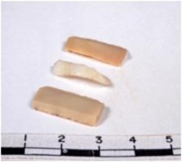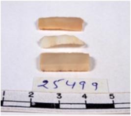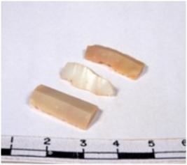 | Description / विवरण | A fragment of a rectangular shaped chert blade showing dorsal sides with sharp edges having smooth surface and triangular section. |