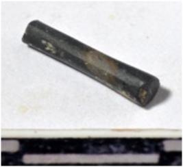| Description / विवरण | A fragment of a stone drill bit, circular in section, broken from both ends of smooth surface. |