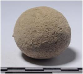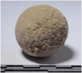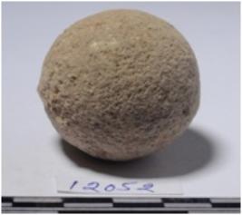 | Description / विवरण | A stone sling ball round in shape of rough surface. |