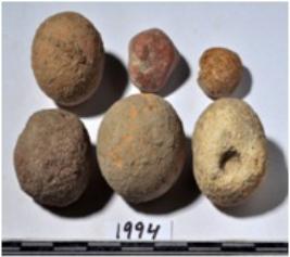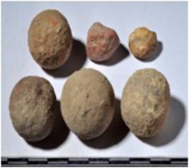 | Description / विवरण | Terracotta sling balls, round in shape of smooth surface. |