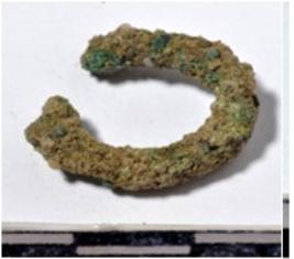 | Description / विवरण | A fragment of a copper hook, circular in section of rough surface. |