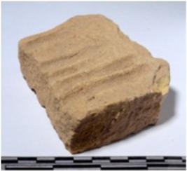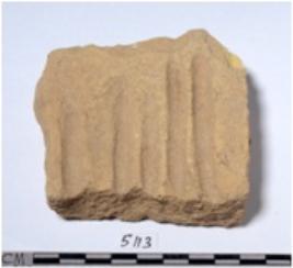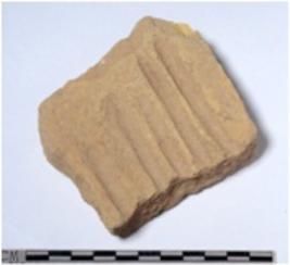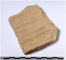 | Description / विवरण | A fragment of a stone polisher having grooves on exterior of rough surface. |