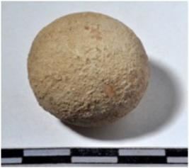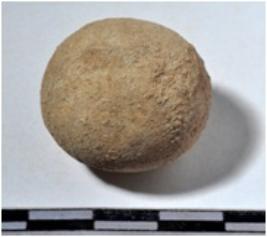 | Description / विवरण | A terracotta sling ball round in shape of smooth surface. |