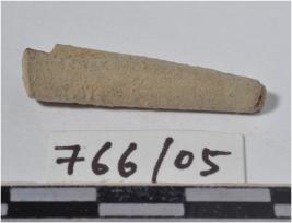 | Description / विवरण | A fragment of a bone point, broken both end, circular in section and smooth surface. |