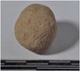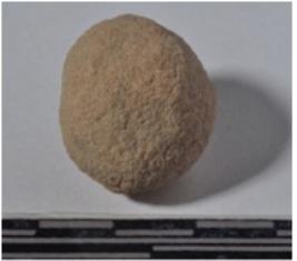 | Description / विवरण | A stone sling ball, round in shape of rough surface. |