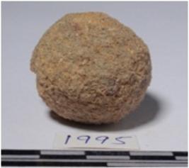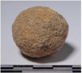 | Description / विवरण | A stone sling ball round in shape of rough surface. |