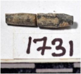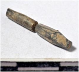 | Description / विवरण | A fragment of a stone drill bit, circular in section, broken from both ends of rough surface. |