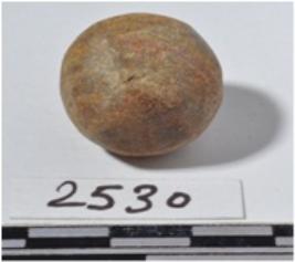 | Description / विवरण | A stone sling ball round in shape of smooth surface. |
