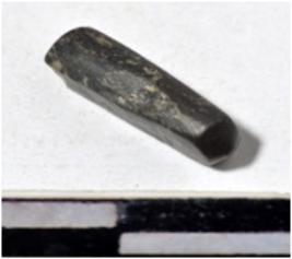 | Description / विवरण | A fragment of a stone drill bit circular in section broken from one end of smooth surface. |