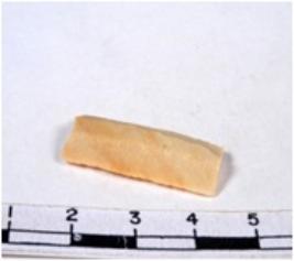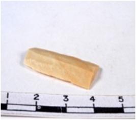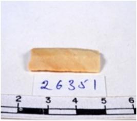 | Description / विवरण | A fragment of a rectangular shaped chert blade showing dorsal sides with sharp cutting edges having smooth surface and triangular section. |