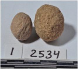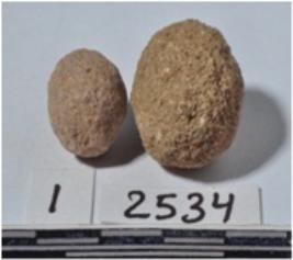 | Description / विवरण | A stone sling ball, round in shape of rough surface. |