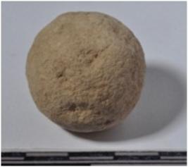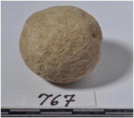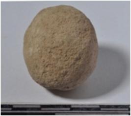 | Description / विवरण | A stone sling ball round in shape of rough surface. |