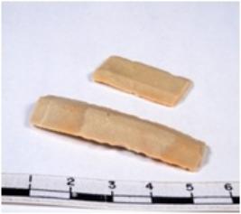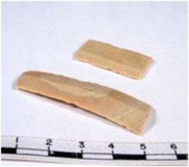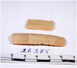 | Description / विवरण | A fragment of a rectangular shaped chert blade showing dorsal sides with sharp edges having smooth surface and triangular section. |