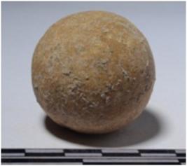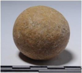 | Description / विवरण | A stone sling ball, round in shape of smooth surface. |