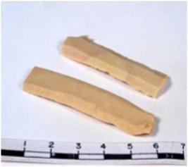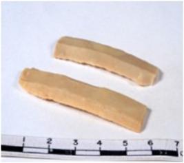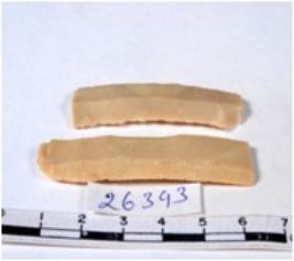 | Description / विवरण | A fragment of a rectangular shaped chert blade showing dorsal sides with sharp edges having smooth surface and triangular section. Broken |