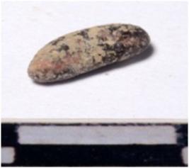 | Description / विवरण | A fragment of a stone drill bit circular in section pointed on one end of smooth surface. |