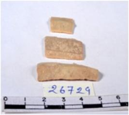 | Description / विवरण | A fragment of a rectangular shaped chert blade showing dorsal sides with sharp edges having smooth surface and uneven section. |