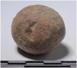 | Description / विवरण | A stone sling ball, round in shape of smooth surface. |