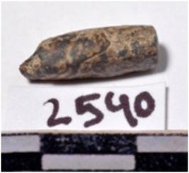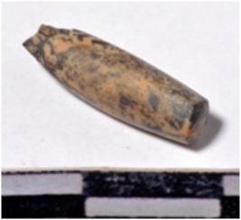 | Description / विवरण | A fragment of a stone drill bit, circular in section broken both end of smooth surface. |
