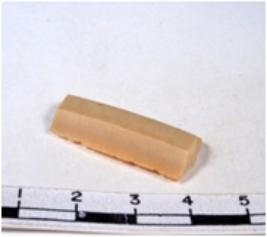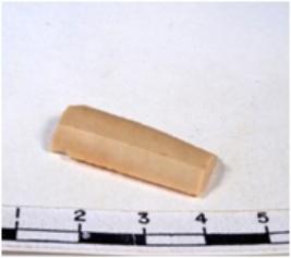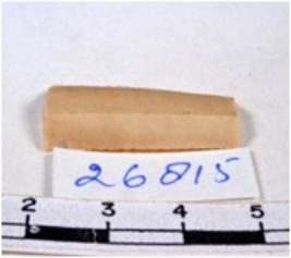 | Description / विवरण | A fragment of a rectangular shaped chert blade showing dorsal sides with sharp edges having smooth surface and uneven section. |