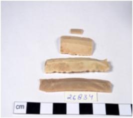| Description / विवरण | A fragment of a rectangular shaped chert blade showing dorsal sides with sharp edges having smooth surface and triangular section. |
