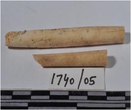 | Description / विवरण | A fragment of a bone point having broken edge one side circular in section of smooth surface. |
