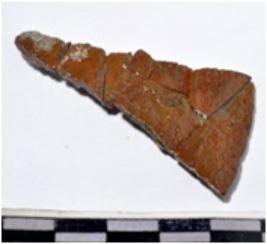 | Description / विवरण | A fragment of a mended copper spear head, having sharpened one end of rough surface. |