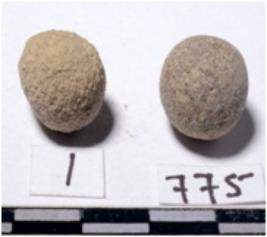 | Description / विवरण | A stone sling ball, round in shape of rough surface. |