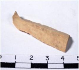 | Description / विवरण | A fragment of a rectangular shaped chert blade showing dorsal sides with sharp cutting edges having smooth surface and triangular section. |