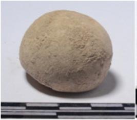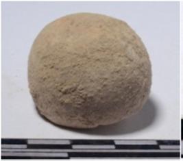 | Description / विवरण | A fragment of a stone sling ball, round in shape of smooth surface. |