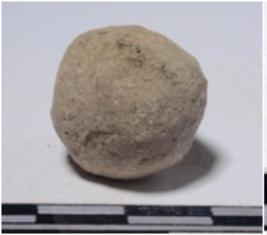| Description / विवरण | A stone sling ball, round in shape of smooth surface. |