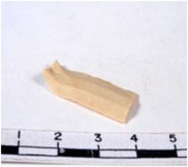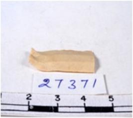 | Description / विवरण | A fragment of a rectangular shaped chert blade showing parallel sides with sharp edges having smooth surface and triangular section. |