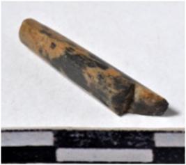 | Description / विवरण | A fragment of a stone drill bit uneven in section broken from both end of smooth surface. |