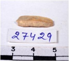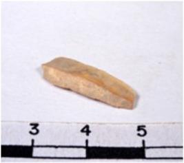 | Description / विवरण | A fragment of a rectangular shaped chert blade showing dorsal sides with sharp cutting edges having smooth surface and uneven section. |
