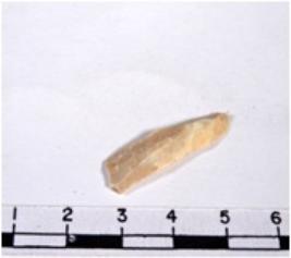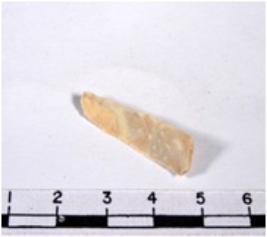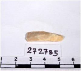 | Description / विवरण | A fragment of a conical shaped chert blade showing dorsal sides with sharp cutting edges having smooth surface and uneven section. |