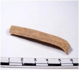 | Description / विवरण | A fragment of a rectangular shaped chert blade showing dorsal sides with sharp cutting edges having smooth surface and triangular section. |