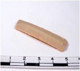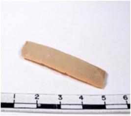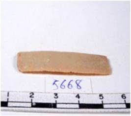| Description / विवरण | A fragment of a rectangular shaped chert blade showing parallel sides with sharp edges having smooth surface and uneven section. |