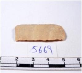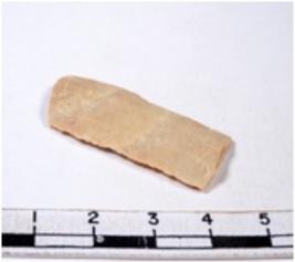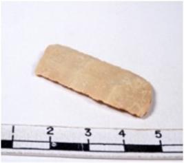 | Description / विवरण | A fragment of a rectangular shaped chert blade showing parallel sides with sharp edges having smooth surface and uneven section. |