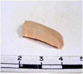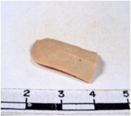 | Description / विवरण | A fragment of a rectangular shaped chert blade showing dorsal sides with sharp edges having smooth surface and triangular section. |